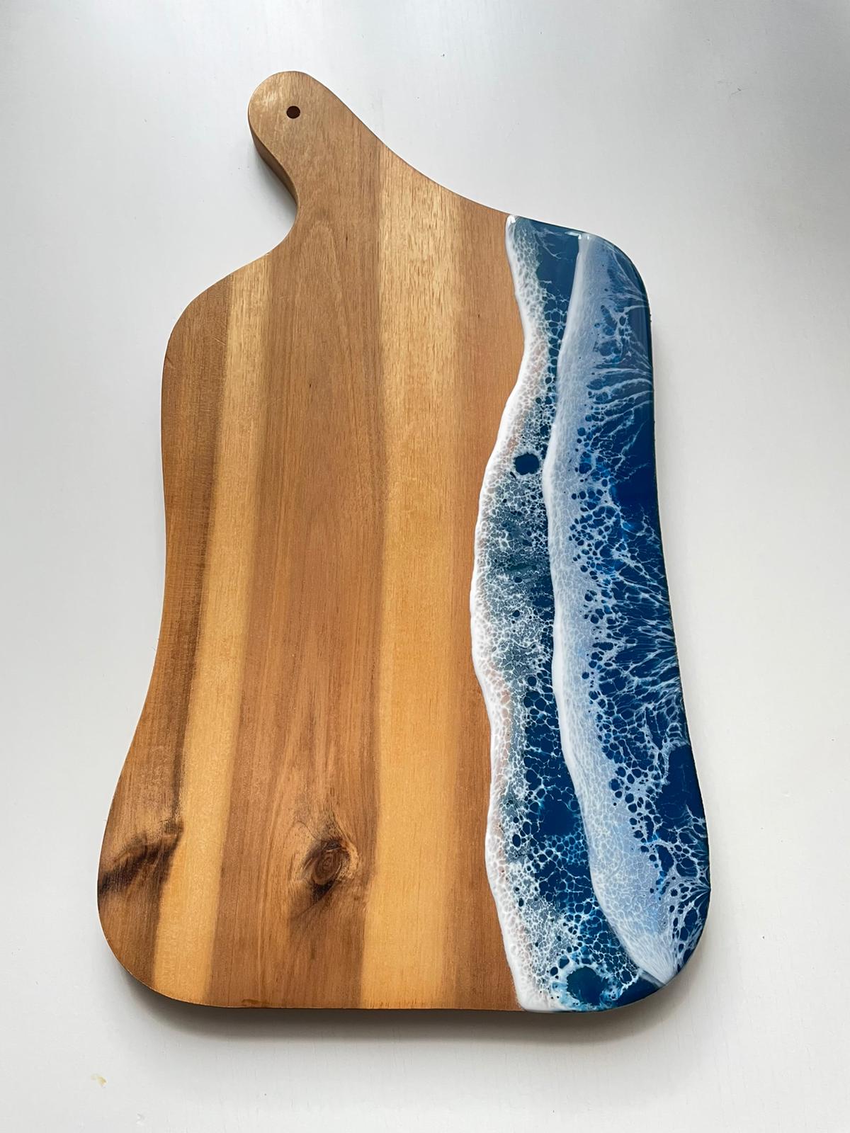 Drevená doska na krájanie s dekoráciou zo živice v štýle morských vĺn: Large