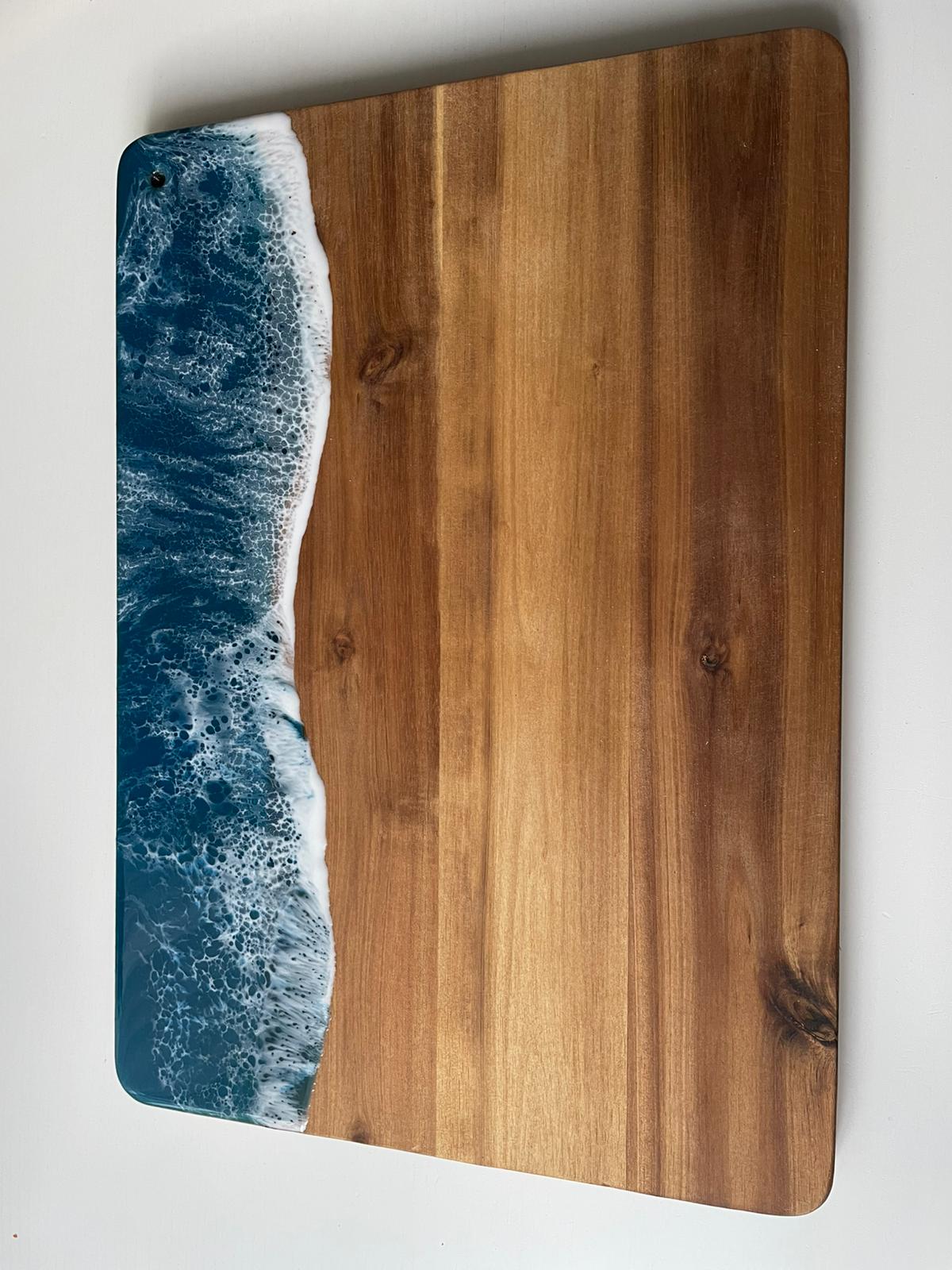 Drevená doska na krájanie s dekoráciou zo živice v štýle morských vĺn: obdlznik-Large